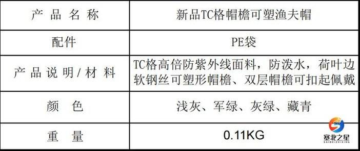 塞北之星团购 新品TC格帽檐可塑渔夫帽